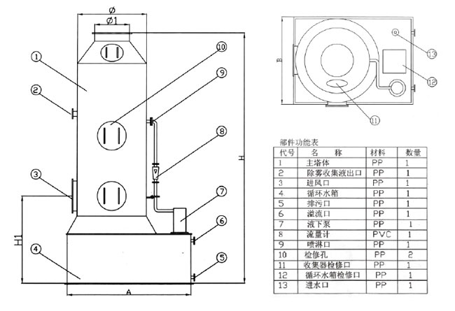 設備采用聚丙烯全塑制造,廣泛應用于化工、石油等行業(yè)生產過程中的尾氣,廢氣的吸收和凈化處理,達標排放。